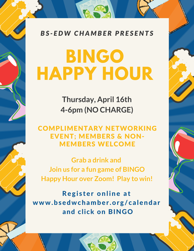 Join us for a complimentary networking event! Grab a drink and join us for a fun game of BINGO Happy Hour, ZOOM style! Have to play for your chance to win. Register for a Bingo card which will be emailed to you the day before with the meeting link.